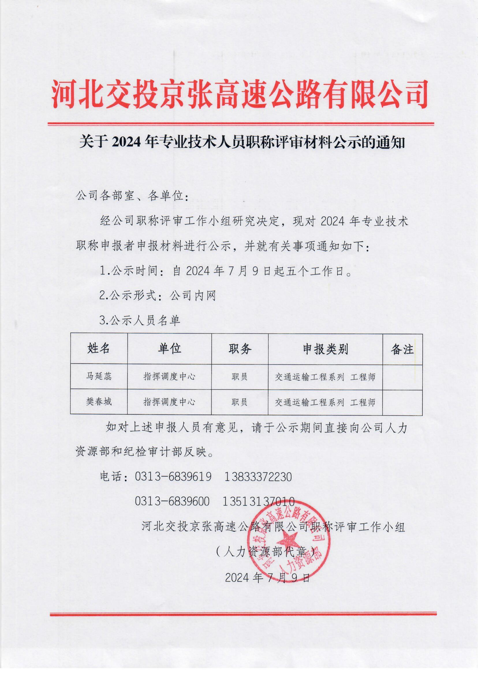 關(guān)于2024年專業(yè)技術(shù)人員職稱評(píng)審材料公示的通知