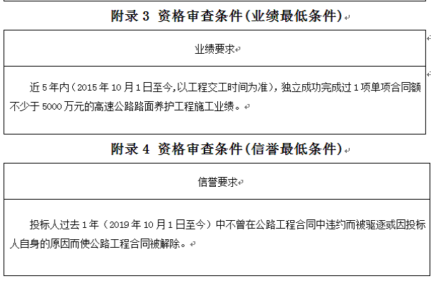 投標(biāo)人應(yīng)進(jìn)入交通運(yùn)輸部“全國(guó)公路建設(shè)市場(chǎng)信用信息管理系統(tǒng)(http://glxy.mot.gov.cn)”中的公路工程施工資質(zhì)企業(yè)名錄,且投標(biāo)人名稱和資質(zhì)與該名錄中的相應(yīng)企業(yè)名稱和資質(zhì)完全一致。